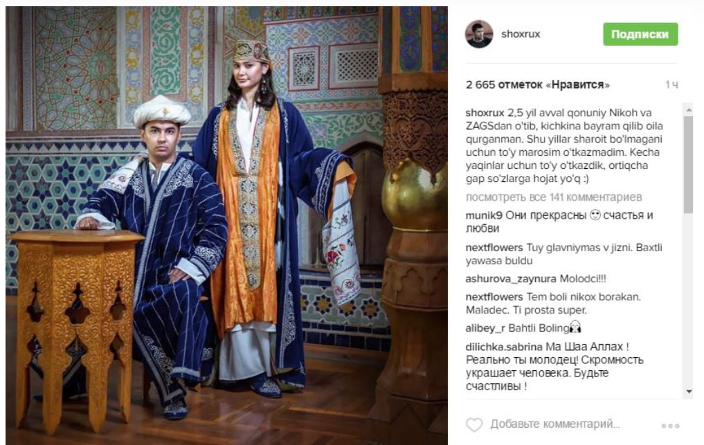 — To‘ylarga juda ko‘p chaqirishadi. Lekin hammasiga ham boravermayman. Chunki to‘ylarda odamlar dam oladi, spirtli ichimliklar ichishadi. Menga esa bunday muhit yoqmaydi. O‘zim bilgan, tanigan insonlar bo‘lsa albatta boraman.